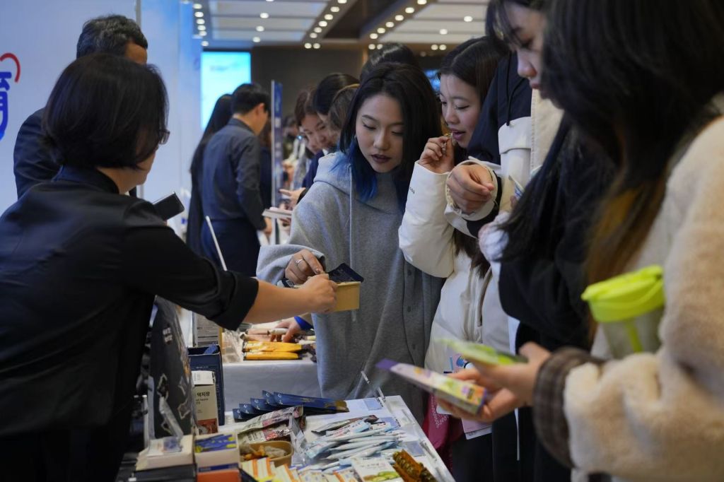 上午11时30分,活动进入体验环节。现场设置了美食与大头贴体验活动,中韩嘉宾与师生共同品尝特色美食,在轻松愉快的氛围中交流互动,不少人还通过拍摄大头贴的方式定格美好瞬间,进一步拉近了彼此的距离。此外,各大学代表向河北美术学院师生分发了礼品,以实物为载体传递友好情谊,进一步拉近双方距离。